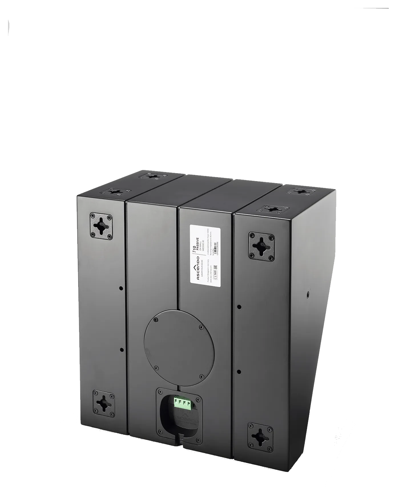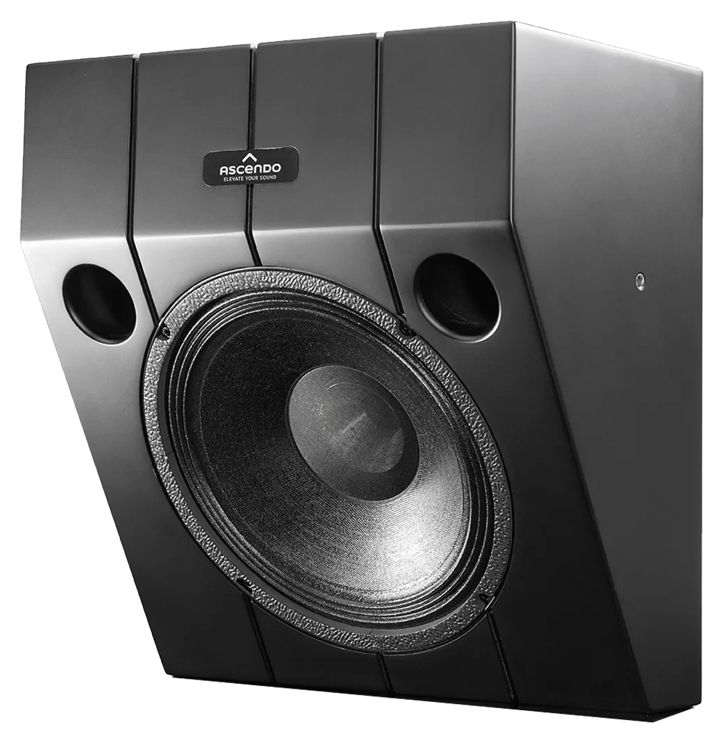 The design objective for this model was to offer a pre-angled version of THE10 PASSIVE ON WALL that can be installed in multiple locations where angling the speakers is mandatory. Such locations include but are not limited to front wide, Atmos and DTS top front and rear, front or rear high surrounds, side surrounds etc.