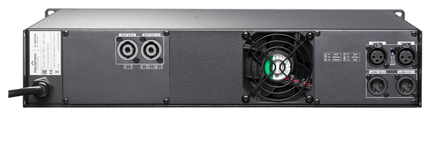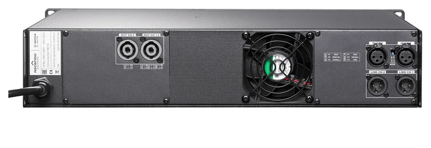 230 V @ 4 Ω: 2 x 3000 W 230 V @ 8 Ω: 2 x 1500 W
