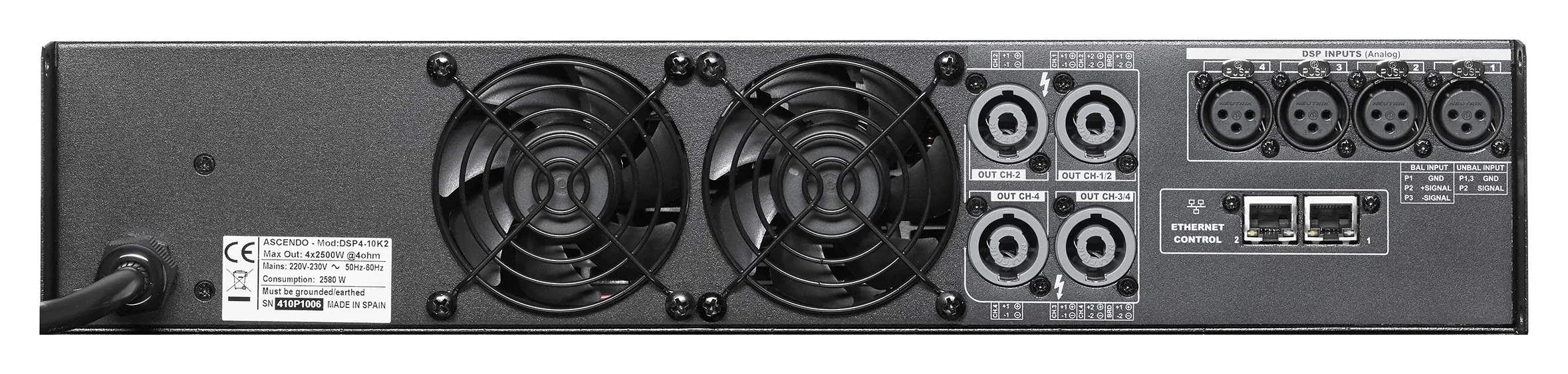 This powerful amplifier range from ASCENDO features state-of-the-art amplification technology, utilizing a very efficient and green design, without diminishing the quality of sound and dynamics that ASCENDO amplifiers are known for. This new generation of power supplies use Power Factor Correction (PFC) to improve efficiency, with the design also featuring high-efficiency audio modules in class D, and a very high capacity for instantaneous power.