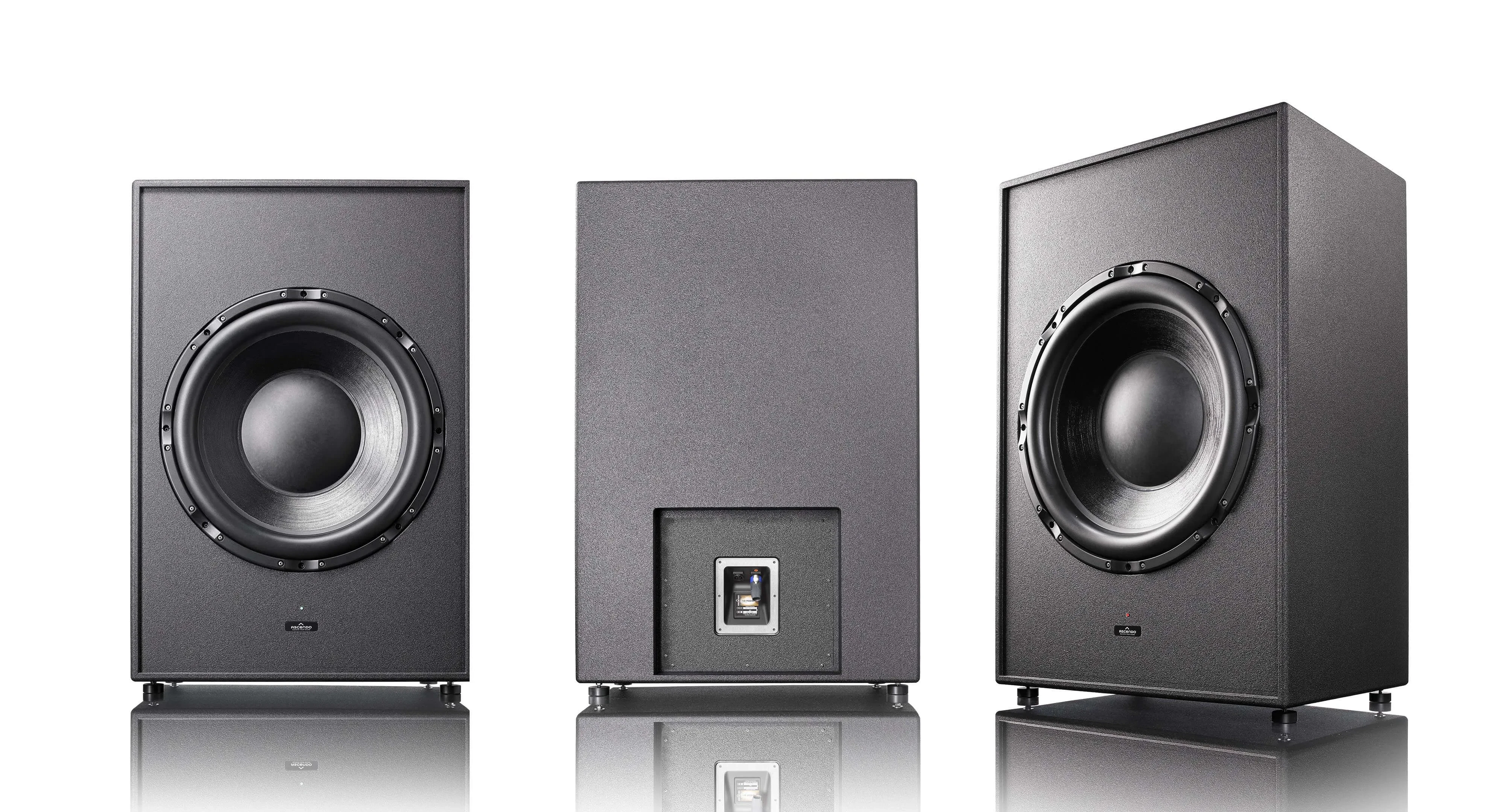 Its huge cone surface area and huge 90 mm of linear stroke - represents a world record for cinema subwoofers - allow it to move a gigantic volume of 10 liters of air per stroke to pressurize the room. Due to its ultra-low resonance frequency and its sealed enclosure design the group delay is several times faster than the smaller 18", 15" or 12" subwoofers at the same frequency. Also the acoustic power output per cubic inch is by far in favour of this unique design compared to stacked multiple smaller subwoofers.